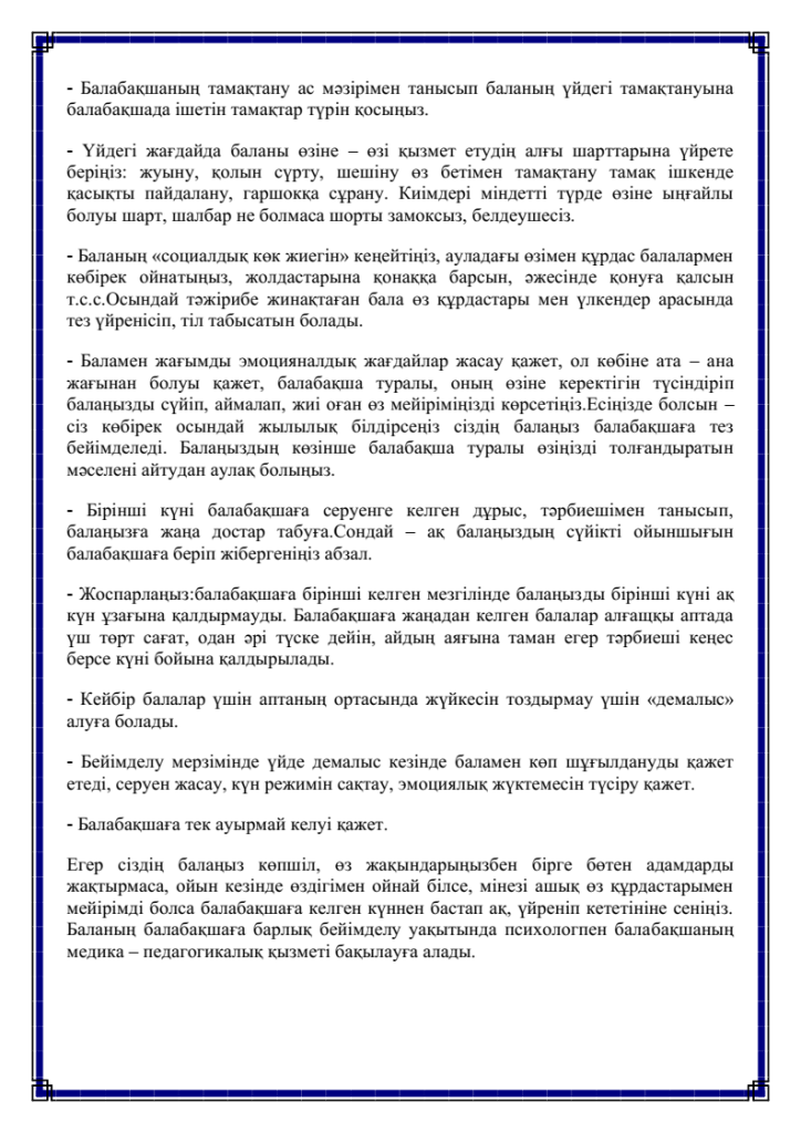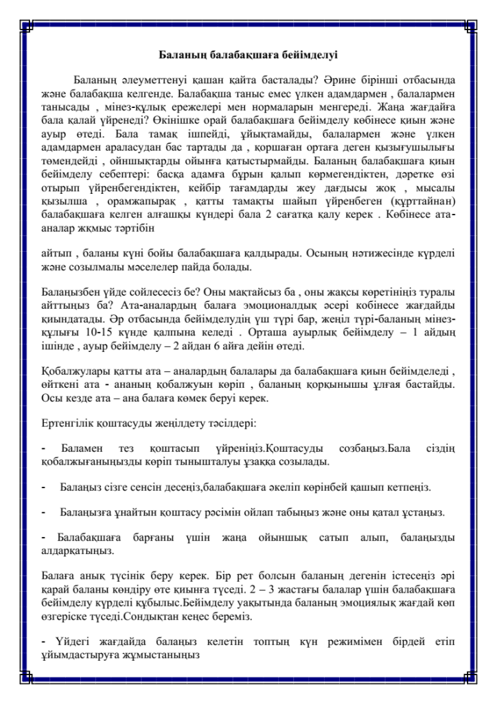 Баланың балабақшаға бейімделуі